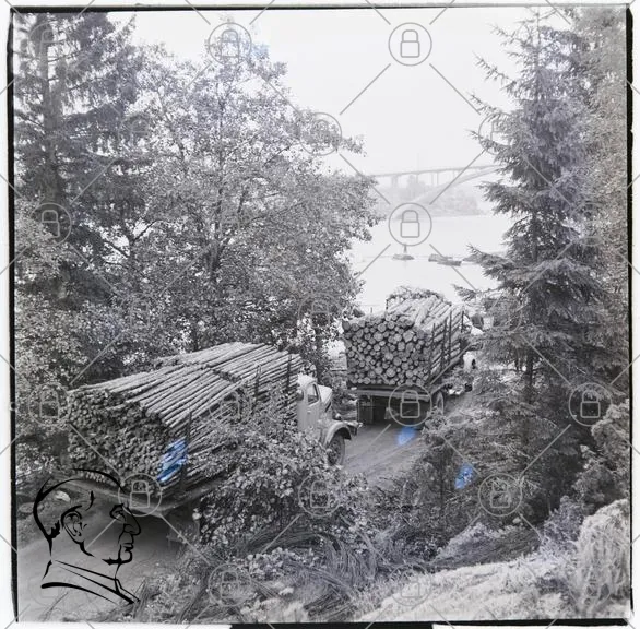 lastbilar, timmer, skog, flod, transport, träd, natur, väg, last, trä, landskap, fordon, industri, trävaror, miljö, byggmaterial, lastning, avverkning, trädfällning, skogsbruk, landsväg, lastbilstransport, trästammar, skogslandskap, lastbilar i skogen, flodlandskap
