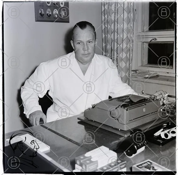 man, skrivbord, skrivmaskin, vit rock, fönster, kontor, svartvitt, 1900-tal, fotografi, dokument, papper, glasögon, inredning, klassisk, professionell, arbetsmiljö, retro, stil, porträtt, manlig, arbetsplats, kontorsutrustning, tidning, skrivredskap, kontorsmöbler, gammal, traditionell, historia, svartvitt foto, vintage