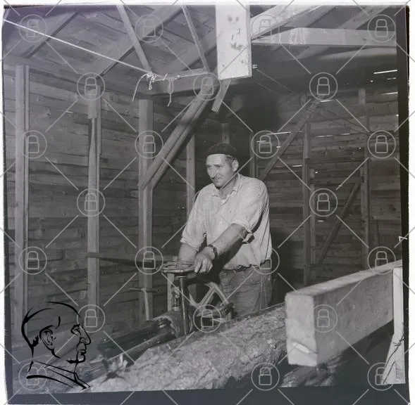 man, sågverk, trä, hantverk, verktyg, arbete, träbearbetning, gammal, byggnad, skog, industri, tradition, hantverkare, trästock, maskin, historisk, inomhus, träprodukter, arbetsmiljö, svartvitt
