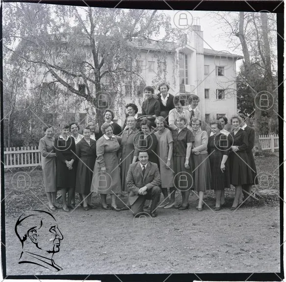 svartvit, gruppfoto, kvinnor, klänningar, 1900-tal, utomhus, träd, byggnad, leende, mode, vintage, porträtt, samling, traditionell, stil, man, fotografering, gemenskap, historia, glädje, vänskap, skola, fest, samarbete, minnen, familj, socialt, kultur, nostalgi, samhörighet