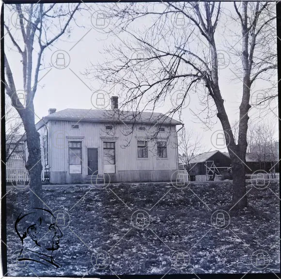 hus, trä, byggnad, landskap, träd, gräsmatta, gammal, arkitektur, fönster, dörr, gård, natur, svartvit, stillhet, utomhus, sommar, landsbygd, traditionell, enkel, bostad, historia, rural, miljö, gårdsplan, tak, staket, gårdshus, skugga, växtlighet, lugn