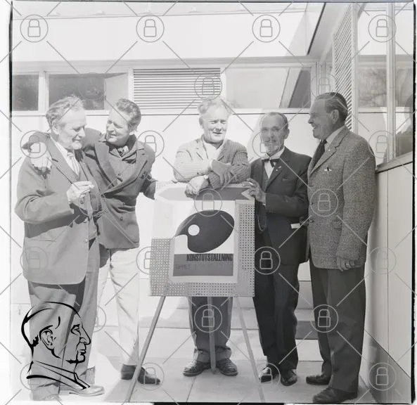 personer, grupp, svartvitt, konst, installation, 1900-tal, män, leende, affisch, utställning, kläder, interiör, arkitektur, fotografi, historisk, samarbete, kultur, konstnärer, evenemang, tradition, stil, retro, porträtt, presentation, konstverk, kreativitet, gemenskap, minnen, tidsepok, uttryck