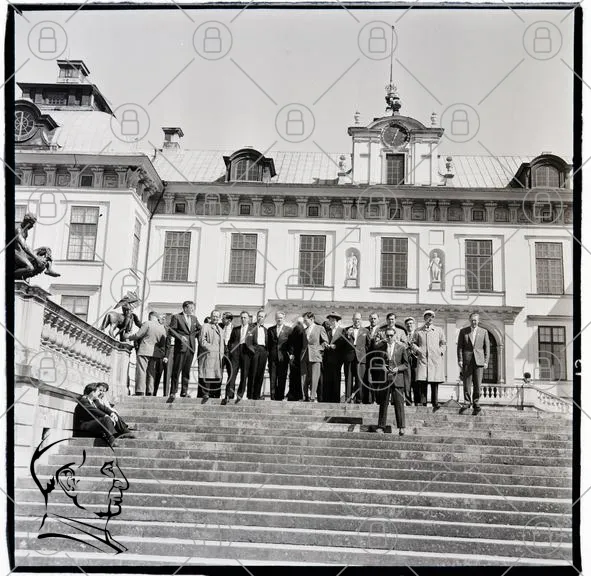 slott, trappa, grupp människor, arkitektur, statyer, byggnad, historisk, utomhus, fotografering, svartvitt, fönster, tak, skulpturer, kultur, turister, herrar, kläder, samling, sten, barockstil