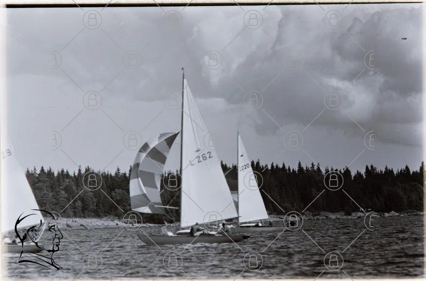 segling, segelbåtar, vatten, skärgård, natur, träd, himmel, moln, svartvitt, sport, fritid, LZ62Z, L-220, båtliv, sommar, sjö, segel, båtar, landskap, avkoppling
