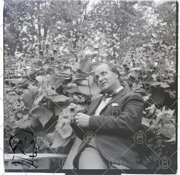 man, växter, trädgård, svartvitt, porträtt, natur, kläder, leende, hand, blad, buskar, 1900-tal, stil, avslappnad, fotografi, utomhus, sommar, grönska, ansikte, uttryck, gammal, traditionell, elegant, sittande, manlig, botanisk, flora, miljö, vintage, kultur