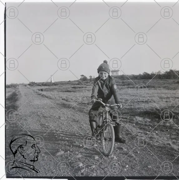 pojke, cykel, landskap, svartvit, väg, natur, hatt, jacka, grus, ljus, fyr, höst, barn, utomhus, fotografering, gammal, nostalgi, ensam, cykeltur, avstånd, frihet, lek, minnen, stillhet, enkelhet, tradition, svensk, landsbygd, cyklist, vintage