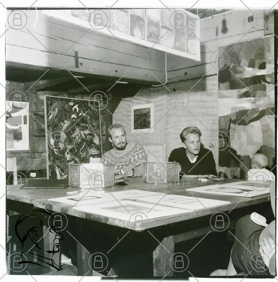 inomhus, bord, män, konst, diskussion, trä, väggar, tavlor, svartvitt, rum, kreativitet, skisser, papper, belysning, möte, kultur, tradition, hantverk, design, konstverk