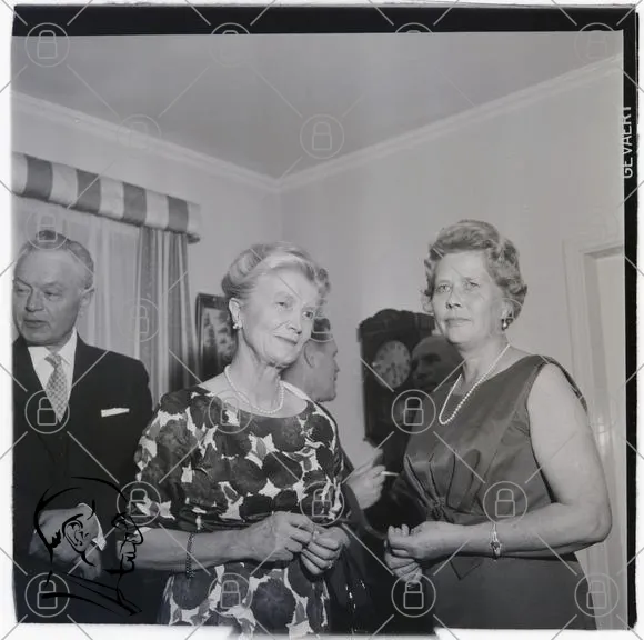 kvinnor, män, fest, kläder, 1960-tal, inomhus, svartvitt, socialt, samvaro, klocka, interiör, stil, ansiktsuttryck, samtal, eleganta, vintage, mode, sällskap, bakgrund, hem