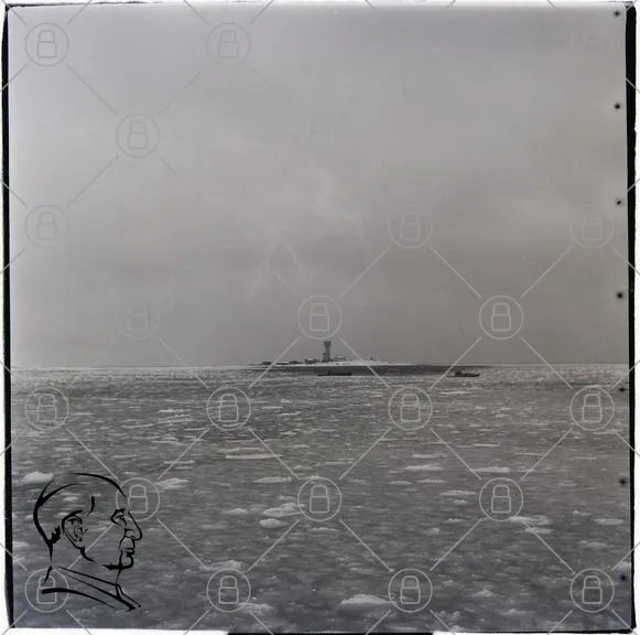 is, hav, is, is, öar, moln, grå, vatten, isflak, kust, fyr, landskap, vinter, natur, horisont, stillhet, avlägsen, reflektion, kallt, dimma