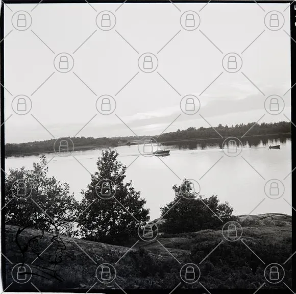 sjö, båt, träd, klippor, landskap, natur, himmel, reflektion, skärgård, stillhet, svartvit, vatten, öar, horisont, lugn, sommar, utsikt, fotografering, friluftsliv, panoramavy