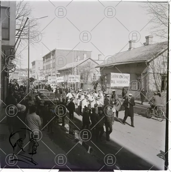 demonstration, marsch, människor, skyltar, svartvitt, gator, byggnader, cykel, bilar, träd, kläder, 1960-tal, folkmassa, protest, samhälle, historia, kultur, stad, aktivitet, medborgare, engagemang, tradition, offentlig, samling, meddelande, rörelse, gemenskap, aktivism, social rättvisa, medvetenhet