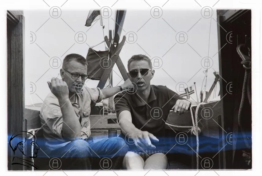 båt, män, solglasögon, segling, flaggor, hav, sommar, vänner, svartvitt, natur, aktivitet, fritid, kläder, båtliv, samvaro, utomhus, roligt, diskussion, fotografering, tradition