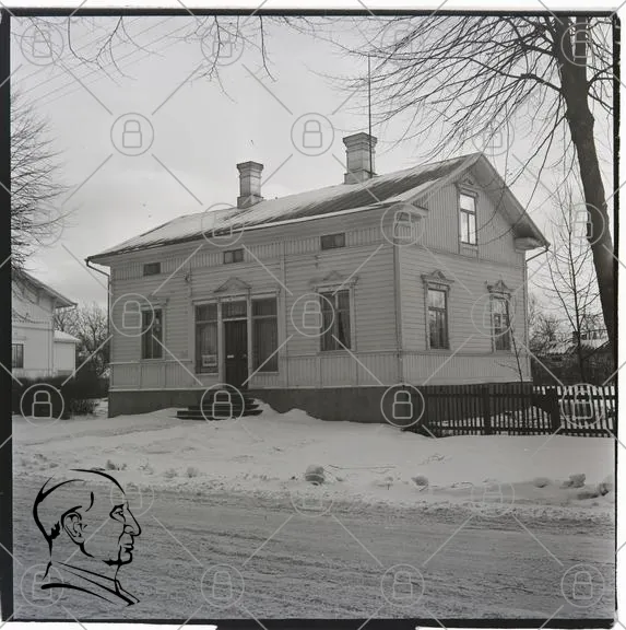 hus, byggnad, snö, vinter, träd, fönster, dörr, tak, landskap, arkitektur, gammal, vit, staket, gata, himmel, moln, svensk, stil, bostad, utomhus, landsbygd, kultur, historia, tradition, kvarter, gård, renovering, stillhet, natur, panorama