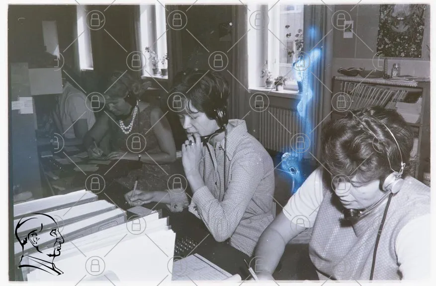 telefonist, kontor, headset, 1980-tal, kvinnor, arbete, skrivbord, anteckningar, telefon, kommunikation, vintage, svartvitt, kontorsmiljö, samtal, professionellt, kontorsutrustning, retro, arbetsplats, teamwork, fokus, service, telefonlinje, kontorspersonal, skrivmaskin, kontorsstol, fönster, belysning, arbetsuppgifter, samarbete, ljudisolering