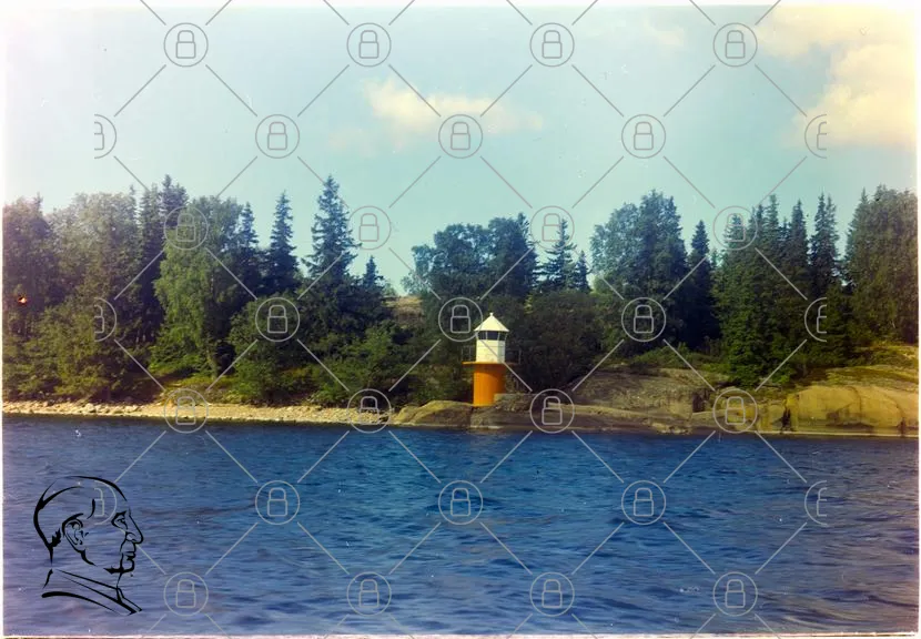 fyr, hav, skärgård, träd, klippor, vatten, landskap, natur, himmel, moln, ljus, orange, byggnad, sommar, reflektion, kust, öar, grönska, stillhet, utsikt, fotografering, svensk, tradition, arkitektur, turism, resmål, avkoppling, panorama, blått, miljö