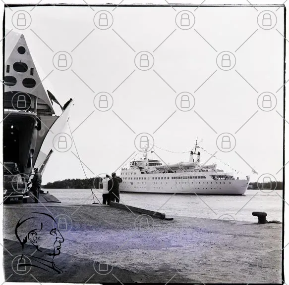 fartyg, hamn, båt, kaj, människor, hund, bil, landskap, vatten, segel, flagga, träd, sommar, resor, transport, turism, hav, vy, strand, båtliv, semester, avkoppling, natur, utsikt, historia, svartvitt, retro, klassisk, kultur, tradition