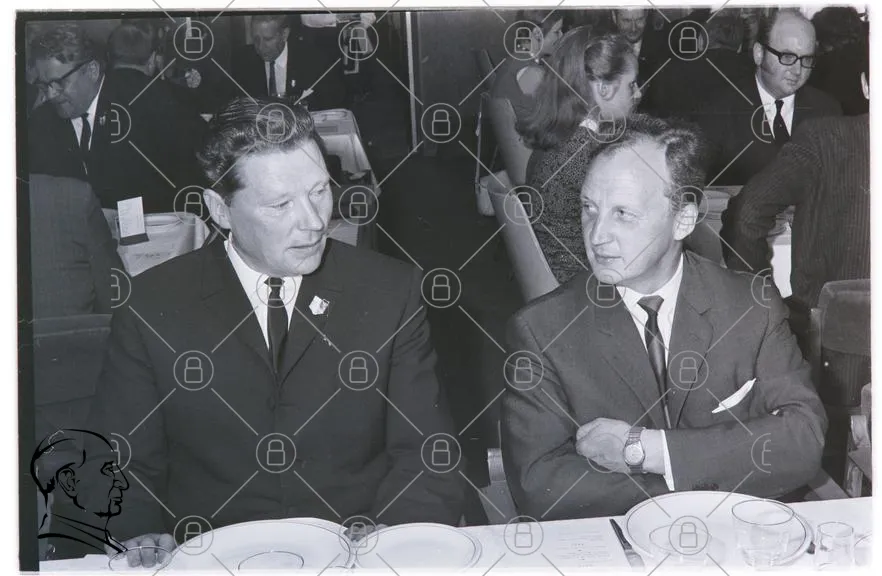 män, kostym, middag, restaurang, svartvitt, 1960-tal, affärsmöte, diskussion, bord, tallrikar, servetter, formell, kläder, män i kostym, socialt sammanhang, eleganta, män som pratar, bakgrund, kvinnor, frisyrer, ansiktsuttryck, professionellt, samarbete, event, fest, stil, interaktion, atmosfär, vintage, klassiskt