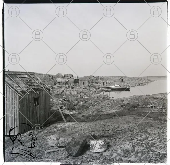 skärgård, stugor, vatten, klippor, båtar, landskap, svartvitt, natur, horisont, byggnader, kust, stillhet, fiske, öar, himmel, trä, gammalt, avlägset, lugnt, traditionellt