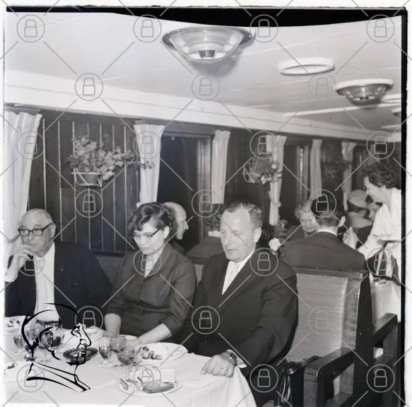 middag, restaurang, sällskap, klädda, bord, glas, mat, servitör, 1950-tal, svartvitt, inredning, människor, samtal, fest, dukat, belysning, växter, klänning, kostym, elegans, socialt, atmosfär, tradition, måltid, gemenskap, stil, tidsepok, interiör, nöje, samvaro
