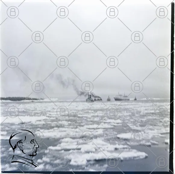 isbrytare, is, hav, fartyg, rök, vinter, snö, sjöfart, landskap, grå, dimma, havsis, frakt, transport, nord, kallt, sjö, kust, skärgård, sjövägar, navigering