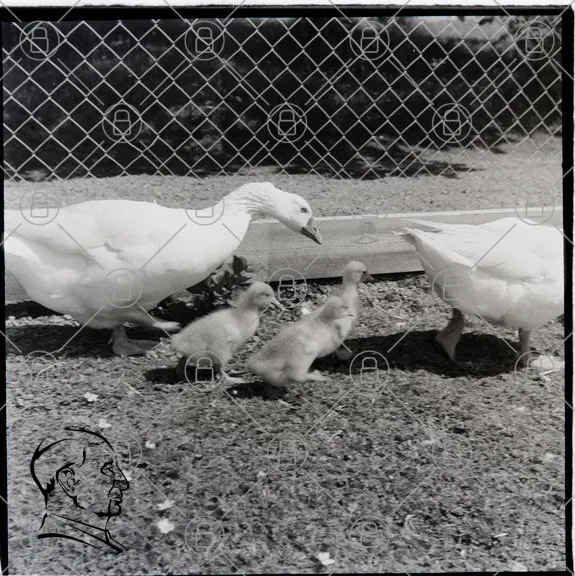 ankor, kycklingar, gård, djur, natur, svartvitt, fåglar, familj, gräs, staket, utomhus, vår, liv, små, söta, landskap, djurhållning, bondgård, fjädrar, lek, matning
