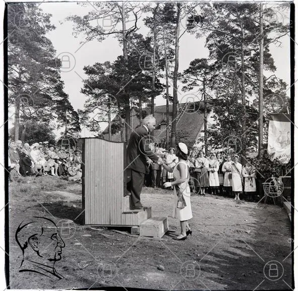 utomhus, talarstol, publik, träd, man, flicka, blommor, ceremoni, skog, sommar, klänning, hatt, hus, människor, evenemang, soligt, tradition, högtid, socialt, samling