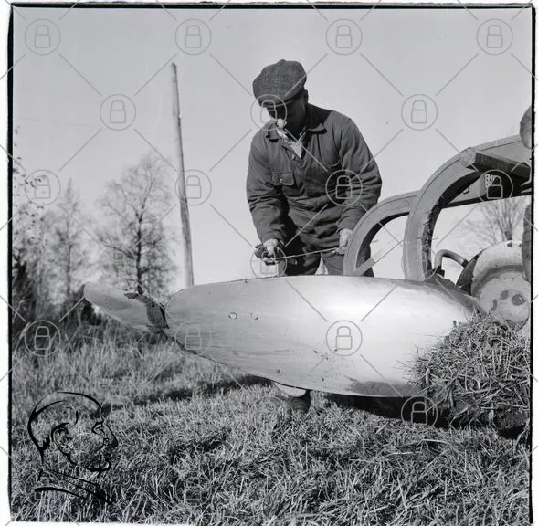 man, maskin, jordbruk, gräs, fält, arbete, vintage, svartvit, landskap, verktyg, skörd, natur, träd, plog, teknik, traditionell, utomhus, 1900-tal, bonde, landsbygd
