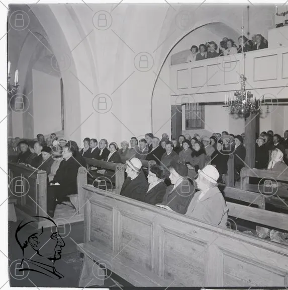 kyrka, gudstjänst, publik, predikan, bänkar, kvinnor, män, kläder, hattar, belysning, trä, inredning, samling, åhörare, talare, atmosfär, tradition, gemenskap, andakt, historia, arkitektur