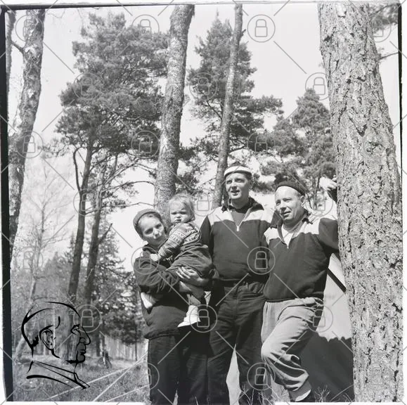 familj, skog, barn, vuxna, svartvitt, natur, träd, leende, kläder, traditionell, utomhus, sommar, gemenskap, minnen, fotografi, 1900-tal, nostalgi, samvaro, glädje, lek, kärlek, historia, fritid, avkoppling, landskap, svensk