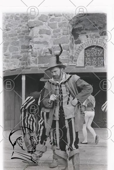 historisk, kostym, teater, medeltid, skådespelare, hatt, kläder, svartvitt, uppträdande, gammal, byggnad, sten, rekvisita, traditionell, scen, föreställning, kultur, konst, man, kvinna, dans, roll, dramatik, folklig, underhållning, stil, uttryck, gest, publik, historia
