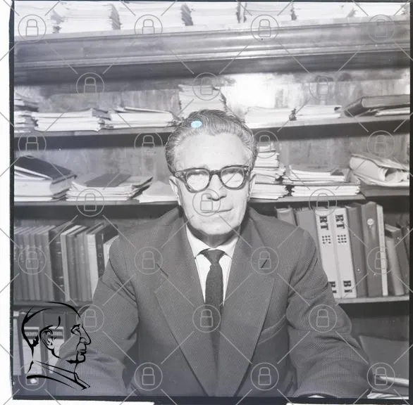 man, glasögon, kontor, böcker, papper, dokument, skrivbord, svartvitt, formell, klädsel, professionell, äldre, porträtt, arkiv, mappar, arbetsmiljö, seriös, ansiktsuttryck, kontorsmiljö, 1950-tal, stil, intellektuell, arbete, administration, fotografi, historia, traditionell, affärsmann, kontorsarbete, studier