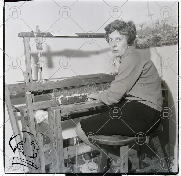 vävstol, kvinna, hantverk, textil, vävning, svartvitt, konst, kreativitet, handarbete, inomhus, 1900-tal, tradition, fokus, arbete, skapar, kultur, design, hobby, konstnär, handgjort