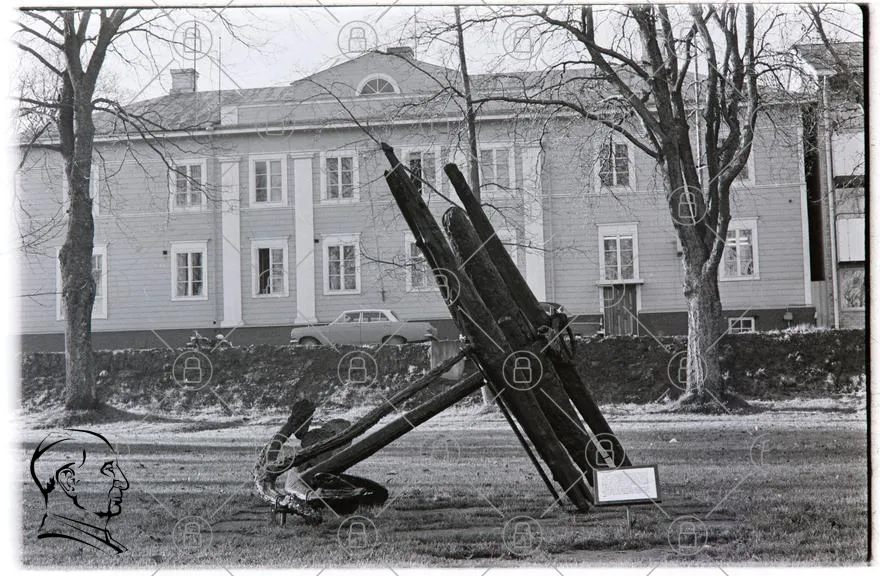 ankare, byggnad, träd, gräs, bil, skylt, gammal, svartvit, landskap, historia, monument, kultur, utomhus, struktur, park, föremål, arkitektur, fotografi, plats, minnesmärke