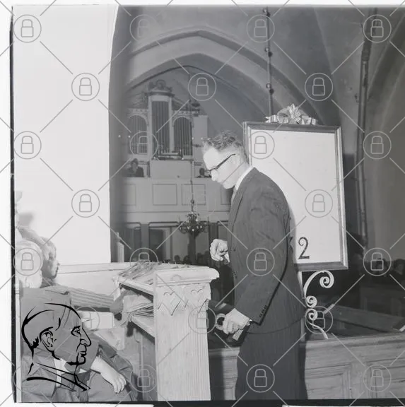 kyrka, orgel, man, barn, predikan, bänk, ljus, tavla, kläder, glasögon, trä, inredning, 1900-tal, samling, musik, andakt, tradition, gemenskap, högtalare, belysning, atmosfär, ceremoni, upplevelse, historia, kultur, arkitektur, interiör, familj, ungdom, aktivitet, evenemang