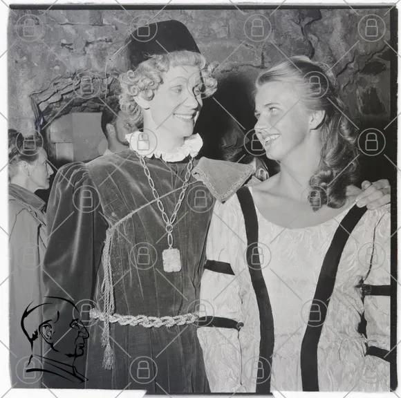 historisk, kläder, kostym, teater, porträtt, svartvitt, 1950-tal, man, kvinna, leende, scen, traditionell, fest, kultur, vintage, smycken, frisyr, klänning, kostymdräkt, bakgrund, interiör