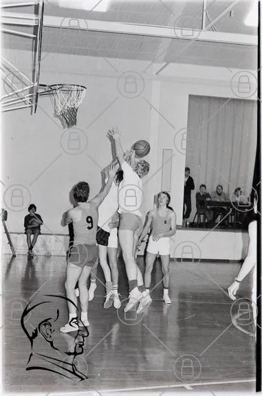 basket, sport, ungdomar, spel, träning, lag, korg, boll, gym, tävling, motion, aktivitet, inomhus, 1960-tal, svartvitt, skola, ungdomsspel, basketspelare, hopp, samarbete, strategi, ungdomsaktivitet, idrott, gymnasie, laganda, ungdomslag, basketmatch, korgboll, sportevenemang, ungdomsorganisation