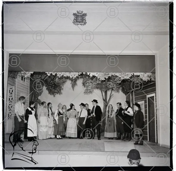 teater, scen, skådespelare, kostymer, föreställning, publik, dekor, svartvitt, grupp, inomhus, kultur, uppträdande, traditionell, kläder, teaterpjäs