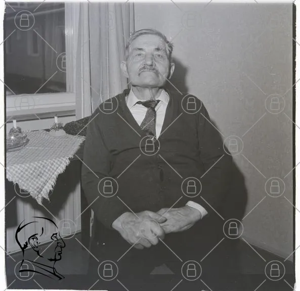 gammal man, svartvitt, sittande, mustasch, glasögon, inomhus, kläder, bord, duk, fönster, hemtrevligt, äldre, ansikte, uttryck, traditionell, svensk, interiör, möbler, tidsepok, nostalgisk, stillbild