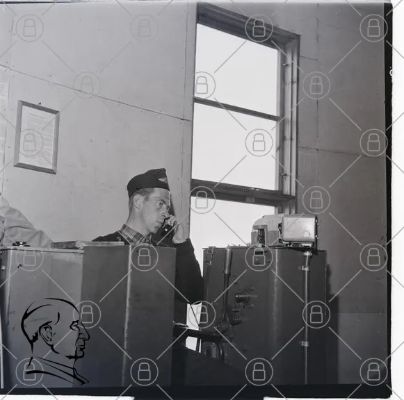 man, telefon, kontor, fönster, skrivbord, hatt, svartvitt, gammal, kommunikation, 1900-tal, kläder, inomhus, arbete, teknik, radio, telefonapparat, professionell, ansiktsuttryck, koncentration, vintage