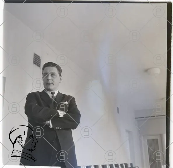 man, kostym, svartvitt, inomhus, stående, rum, vägg, fönster, möbler, stil, 1900-tal, porträtt, affärsman, elegant, klassisk, professionell, uttryck, kläder, interiör, fotografi