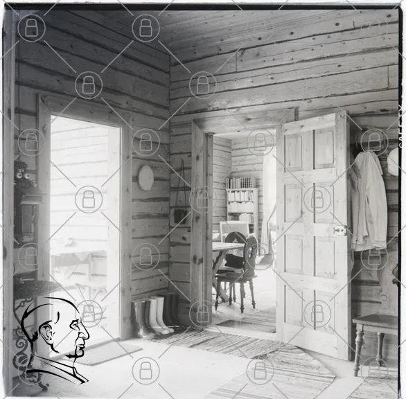 rum, dörrar, träväggar, inredning, bord, stolar, fönster, golv, matta, kläder, belysning, hyllor, kök, stil, svartvitt, hemtrevligt, rustikt, landsbygd, detaljer, design