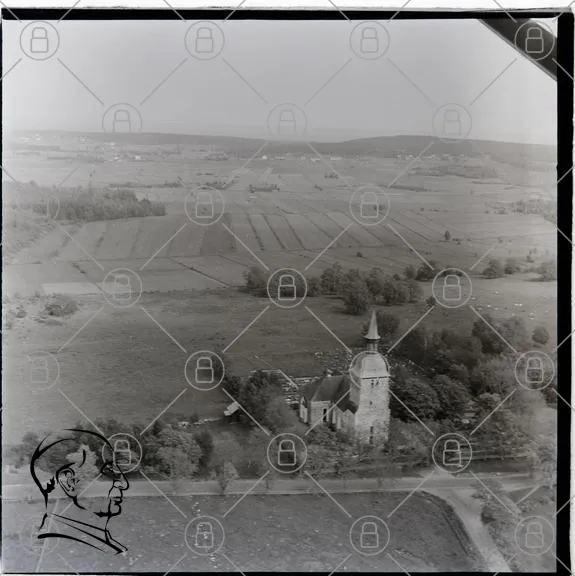 CES.20.47.1. Jomala kyrka från luften. FLygfoto. 1957.