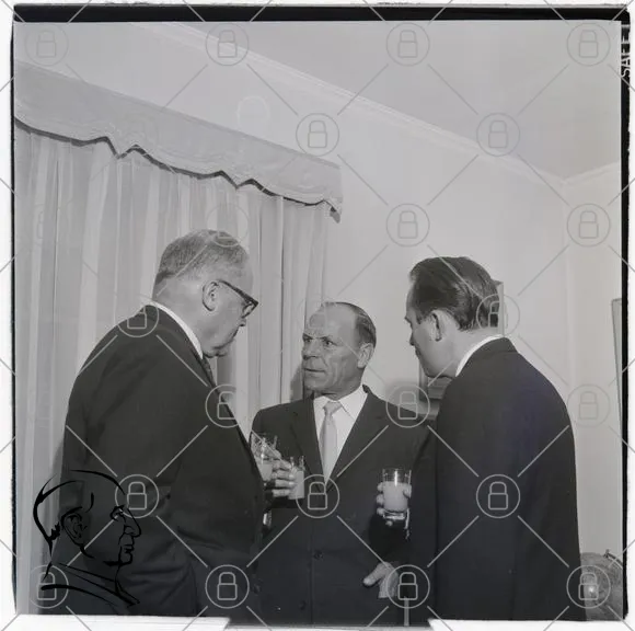 män, kostymer, glas, samtal, inomhus, svartvitt, 1960-tal, affärsmöte, diskussion, formell, kläder, socialt, professionellt, interaktion, stil, elegans, vänner, nätverkande, affärsrelationer, traditionellt, vintage, retro, heminredning, gardiner, uttryck, kroppsspråk, ansiktsuttryck, samvaro, evenemang, fest