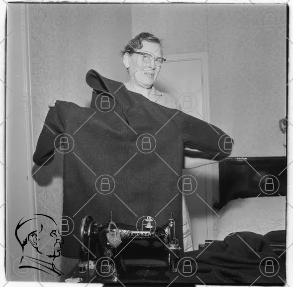 kvinna, sömnad, symaskin, kläder, handarbete, vintage, hem, hantverk, tyg, tröja, glasögon, inomhus, möbler, 1900-tal, mode, kreativitet, hantverkskonst, sy, design, textil, handsytt