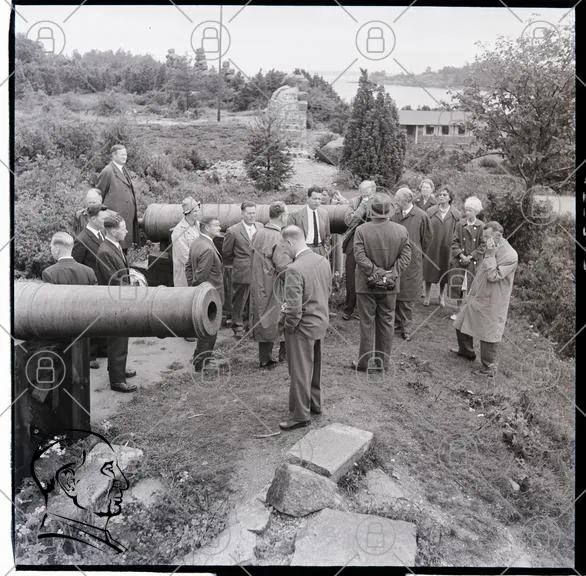 historisk, grupp, människor, kanon, landskap, träd, kläder, möte, fotografering, monument, 1900-tal, utomhus, diskussion, sten, natur, kultur, besök, tradition, minnesmärke, samling, svartvit, fotografi, gammal, staty, vänner, vandrare, sightseeing, turister, historia, evenemang