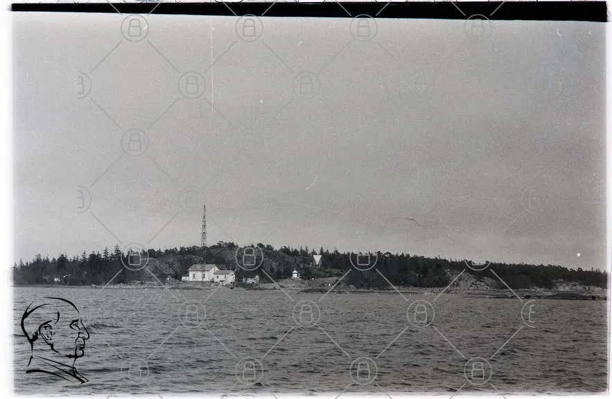 ö, kust, vatten, byggnader, fyr, träd, landskap, himmel, moln, radioantenn, skärgård, svartvit, natur, stillhet, avstånd, öar, fjärran, hav, sommar, lugn, panorama, utsikt, historia, kultur, arkitektur, geografi, fotografering, tradition, miljö, landsbygden