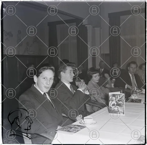 middag, fest, människor, kläder, bord, kaffe, samtal, 1950-tal, svartvitt, evenemang, inomhus, restaurang, dekoration, ansikten, samling, stil, socialt, kultur, tradition, fotografi