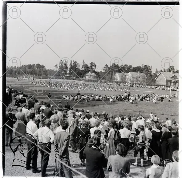 publik, utomhus, evenemang, människor, åskådare, fält, träd, hus, samling, kläder, soligt, aktivitet, grupp, park, landskap, socialt, gemenskap, tradition, kultur, sport, rörelse, sommar, dag, natur, bakgrund, historisk, svartvitt, retro, gammaldags, folkmassa