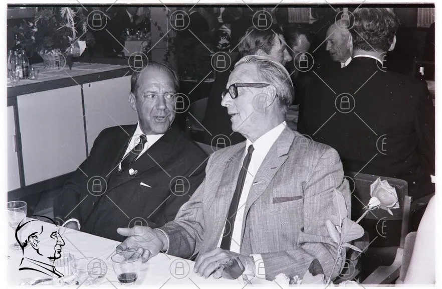 svartvit, män, kostymer, middag, samtal, 1960-tal, fest, inomhus, bord, växter, glas, kläder, stil, socialt, evenemang, bakgrund, ansikten, uttryck, interaktion, elegans, retro, klassiskt, affärsmän, fotografi, nostalgi, tradition, samvaro, kultur, historia