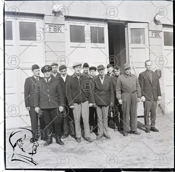 FBK, grupp, män, uniformer, historisk, svartvitt, byggnad, dörrar, fotografering, 1900-tal, kläder, stil, samling, ansikten, arbete, tradition, samhälle, gemenskap, tidsepok, mänsklig, aktivitet, utomhus, fotografering, porträtt, gruppfoto, organisation, identitet, kultur, historia, minnen